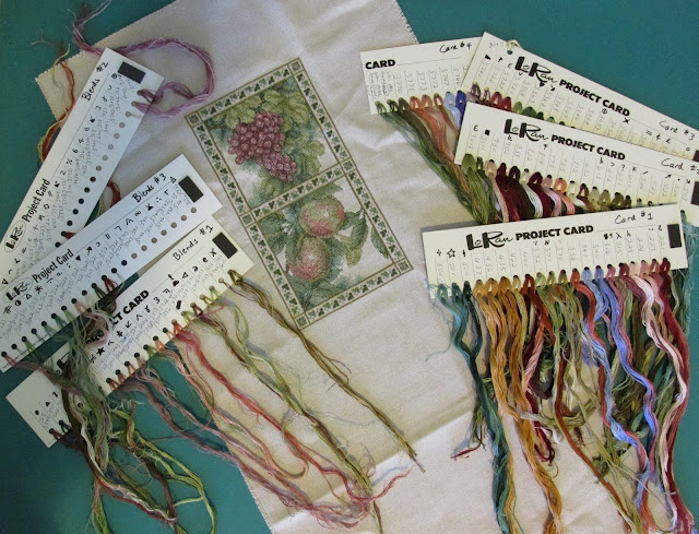 I'm so happy to report that a couple weeks ago I finished stitching my Fruit Bellpull by Teresa Wentzler! This old UFO was a big monkey on my back and I'm glad it's finally done as I started it over 10 years ago. It sat for years without any work being done but I got it out earlier this year and finished off 2 more blocks. The pattern has 6 fruit blocks but I just picked 4 to do and that's enough. I just need to get some bellpull hardware and sew it up one of these days.